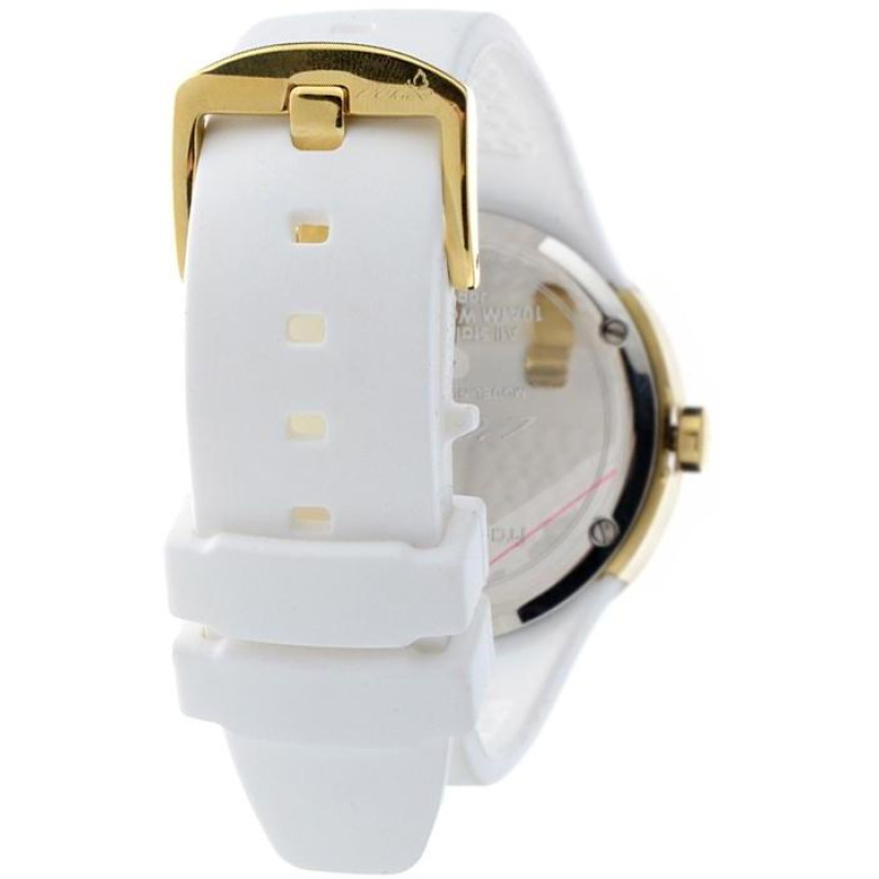 Модель имеет водонепроницаемость 30 м. Корпус выполнен из материала – сталь + PVD. Прочное минеральное стекло надежно защищает циферблат от ударов и других повреждений. Удобный каучук ремешок позволяет часам комфортно сидеть на запястье. Из дополнительных функций имеются: секунды.