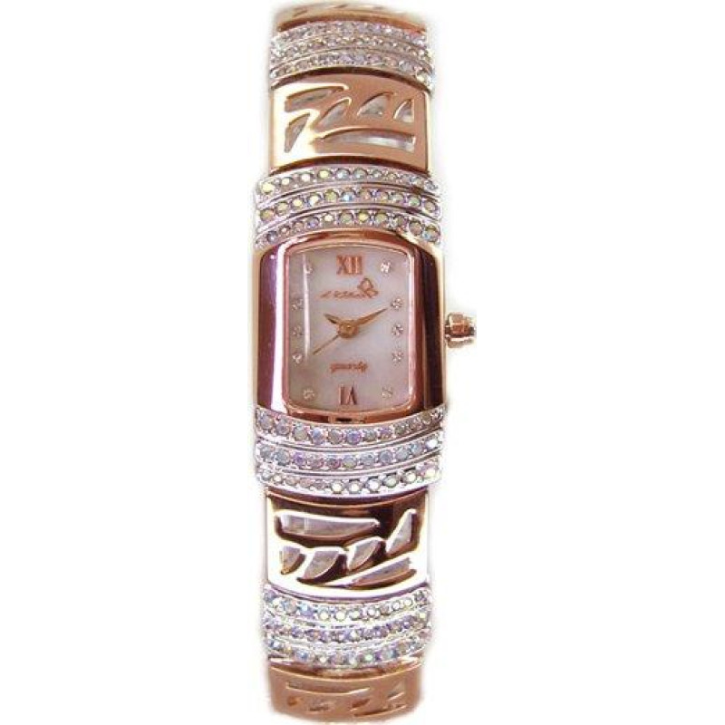 Калибр - Miyota, Корпус и браслет - хромированная латунь с позолотой, Корпус и браслет украшен крист..