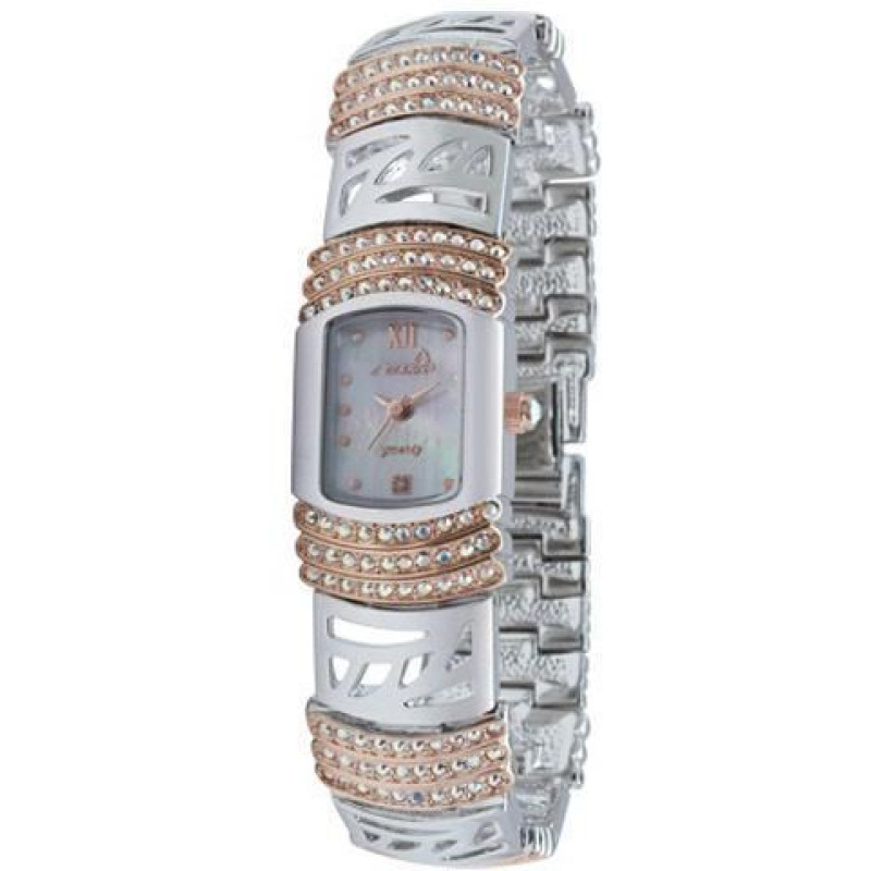 Корпус и браслет частично покрыты PVD-покрытием, цвета розового золота, и украшены кристаллами Swaro..