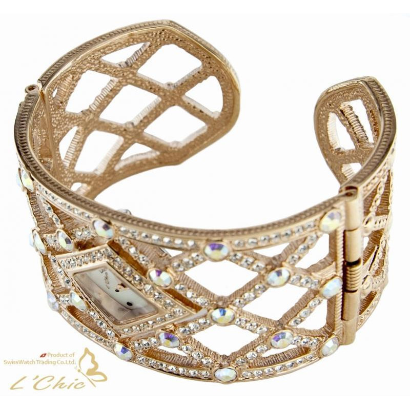 перламутровый циферблат, браслет "скоба", декорирован камнями Swarovski, механизм Miyota..