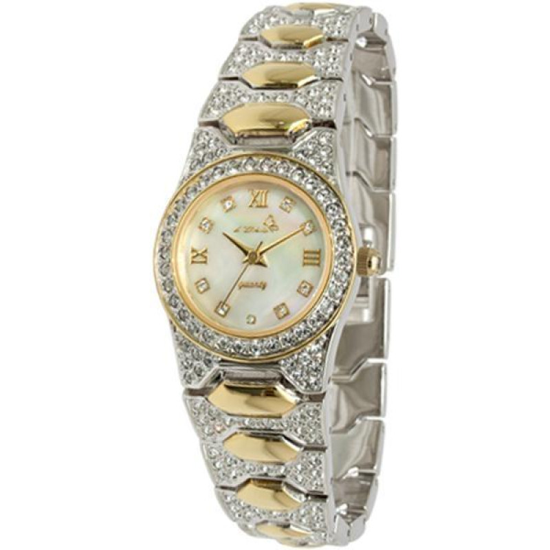 Корпус и браслет из нержавеющей стали и покрыт PVD покрытием- золотого цвета. Циферблат - перламутро..