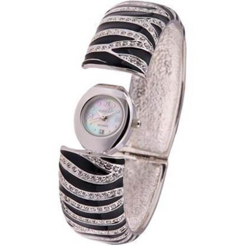 перламутровый циферблат декорирован камнями Swarovski, браслет декорирован камнями Swarovski, механи..