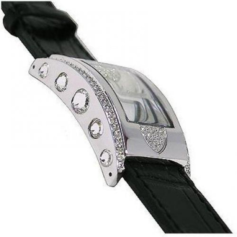 Перламутровый циферблат декорирован камнями Swarovski, ремешёк из натуральной кожи, механизм Miyota..