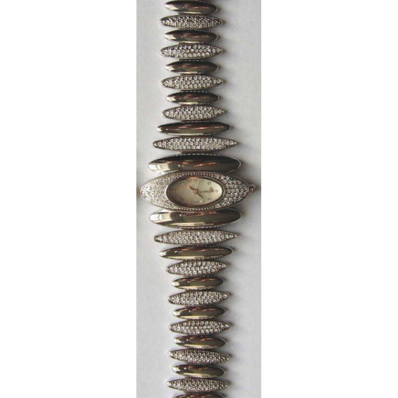 перламутровый циферблат декорирован камнями Swarovski, браслет декорирован камнями Swarovski, механи..