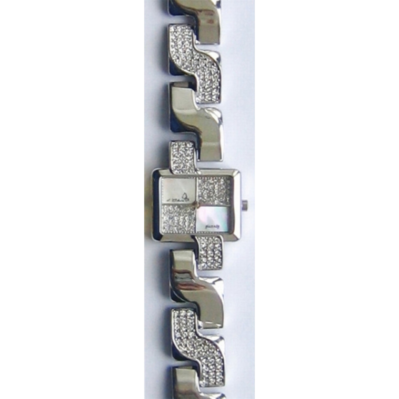 перламутровый циферблат декорирован камнями Swarovski, браслет декорирован камнями Swarovski, механи..
