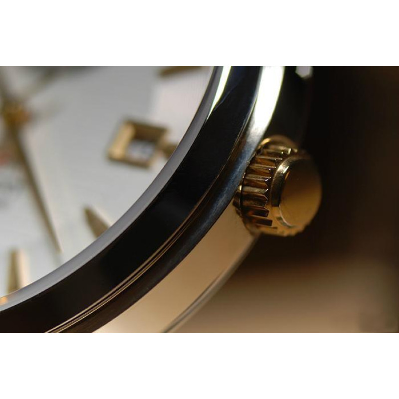 Корпус и браслет частично покрыты золотым PVD-покрытием. Прозрачная задняя крышка..