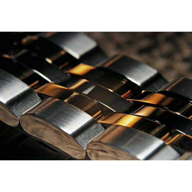 Модель имеет водонепроницаемость 50 м. Корпус выполнен из материала – сталь + PVD. Прочное сапфировое стекло надежно защищает циферблат от ударов и других повреждений. Удобный сталь + PVD браслет позволяет часам комфортно сидеть на запястье. Из дополнительных функций имеются: дата, индикатор запаса хода, минуты, секунды, часы.