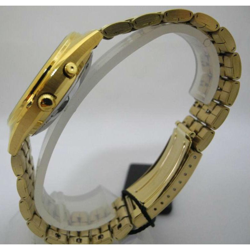 Модель имеет водонепроницаемость 30 м. Корпус выполнен из материала – сталь + PVD. Прочное минеральное стекло надежно защищает циферблат от ударов и других повреждений. Удобный сталь + PVD браслет позволяет часам комфортно сидеть на запястье. Из дополнительных функций имеются: дата, день недели, секунды.