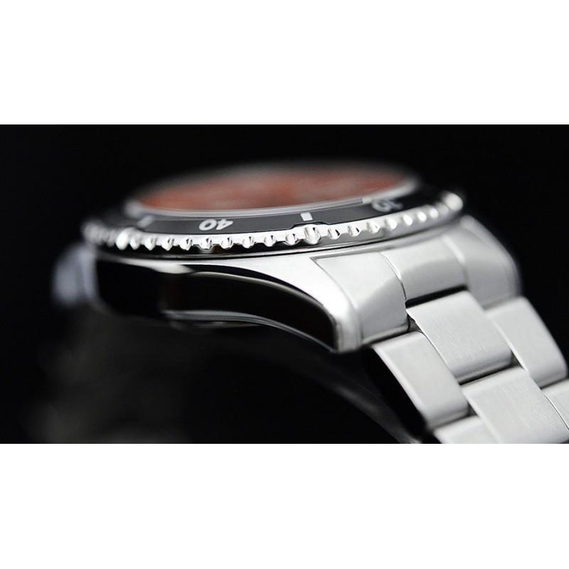Модель имеет водонепроницаемость 200 м. Корпус выполнен из материала – сталь. Прочное минеральное стекло надежно защищает циферблат от ударов и других повреждений. Удобный стальной браслет позволяет часам комфортно сидеть на запястье. Из дополнительных функций имеются: дата, день недели, секунды.