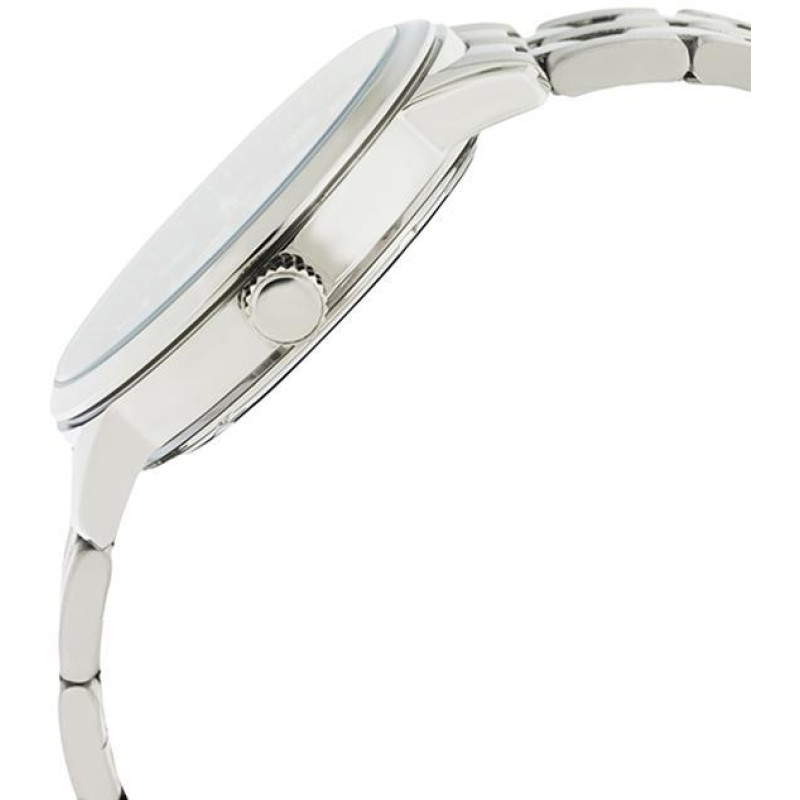 Модель имеет водонепроницаемость 50 м. Корпус выполнен из материала – сталь. Прочное минеральное стекло надежно защищает циферблат от ударов и других повреждений. Удобный стальной браслет позволяет часам комфортно сидеть на запястье. Из дополнительных функций имеются: дата, секунды.