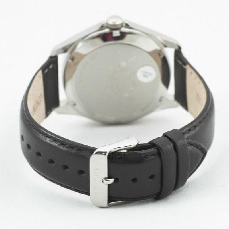 Модель имеет водонепроницаемость 50 м. Корпус выполнен из материала – сталь. Прочное минеральное стекло надежно защищает циферблат от ударов и других повреждений. Удобный кожаный ремешок позволяет часам комфортно сидеть на запястье. Из дополнительных функций имеются: дата, минуты, секунды, часы.