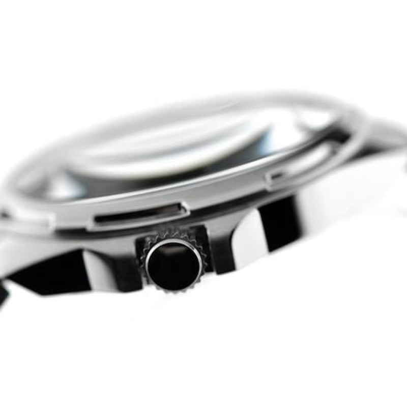 Модель имеет водонепроницаемость 50 м. Корпус выполнен из материала – сталь. Прочное минеральное стекло надежно защищает циферблат от ударов и других повреждений. Удобный стальной браслет позволяет часам комфортно сидеть на запястье. Из дополнительных функций имеются: дата, день недели.