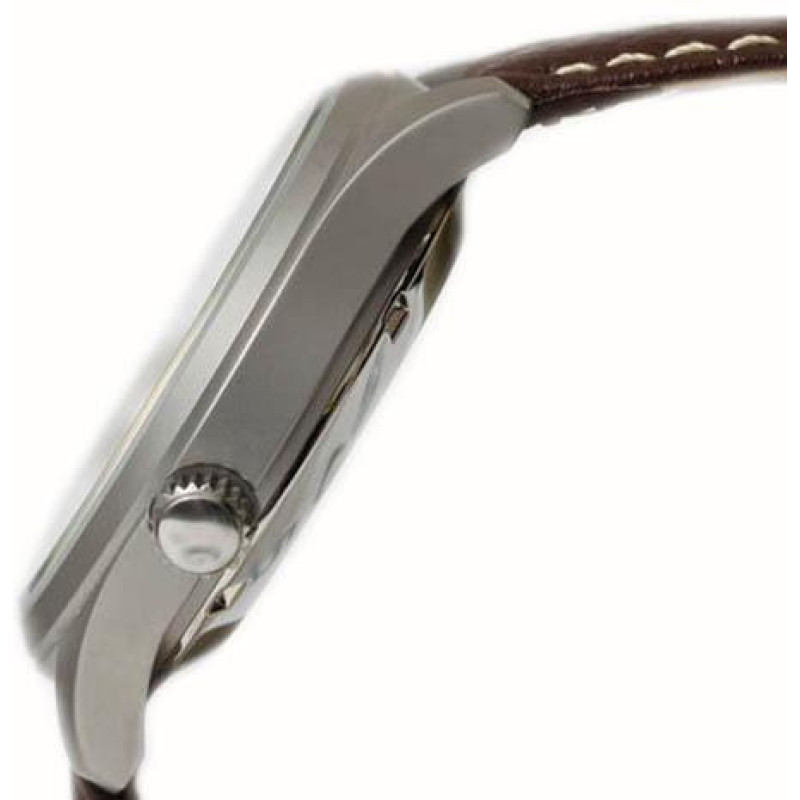 Модель имеет водонепроницаемость 100 м. Корпус выполнен из материала – сталь. Прочное минеральное стекло надежно защищает циферблат от ударов и других повреждений. Удобный кожаный ремешок позволяет часам комфортно сидеть на запястье. Из дополнительных функций имеются: дата, день недели, дополнительный показатель времени в 24-х часовом формате, секунды.