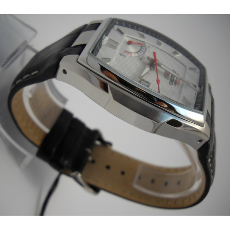 Модель имеет водонепроницаемость 100 м. Корпус выполнен из материала – сталь. Прочное минеральное стекло надежно защищает циферблат от ударов и других повреждений. Удобный кожаный ремешок позволяет часам комфортно сидеть на запястье. Из дополнительных функций имеются: дата.