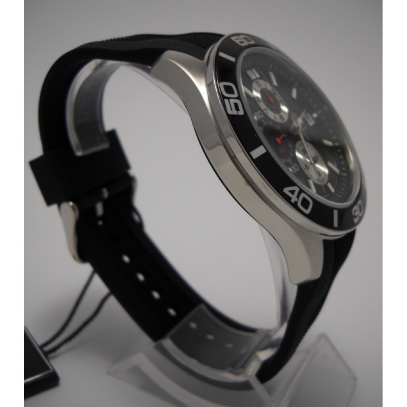 Модель имеет водонепроницаемость 30 м. Корпус выполнен из материала – сталь. Прочное минеральное стекло надежно защищает циферблат от ударов и других повреждений. Удобный каучук ремешок позволяет часам комфортно сидеть на запястье. Из дополнительных функций имеются: дата, хронограф.