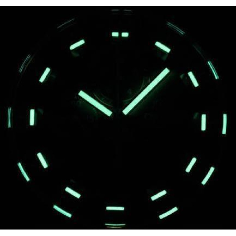 люминесцентные стрелки и метки, цифры на циферблате отсутствуют, застежка из нержавеющей стали..