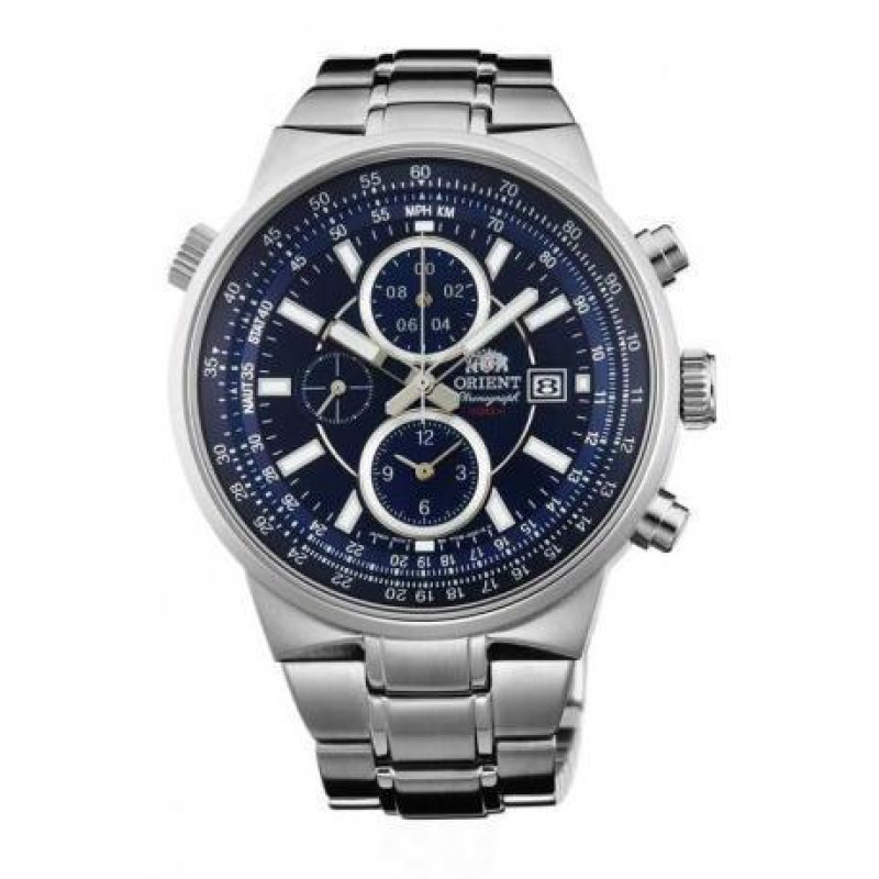 Мужские кварцевые часы-хронограф от японского производителя Orient. Корпус и браслет изготовлены из..