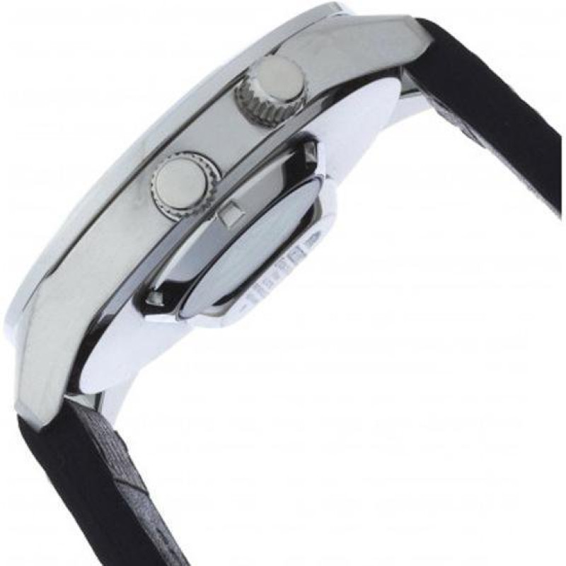 Модель имеет водонепроницаемость 50 м. Корпус выполнен из материала – сталь. Прочное минеральное стекло надежно защищает циферблат от ударов и других повреждений. Удобный кожаный ремешок позволяет часам комфортно сидеть на запястье. Из дополнительных функций имеются: GMT, дата, день недели, секунды.