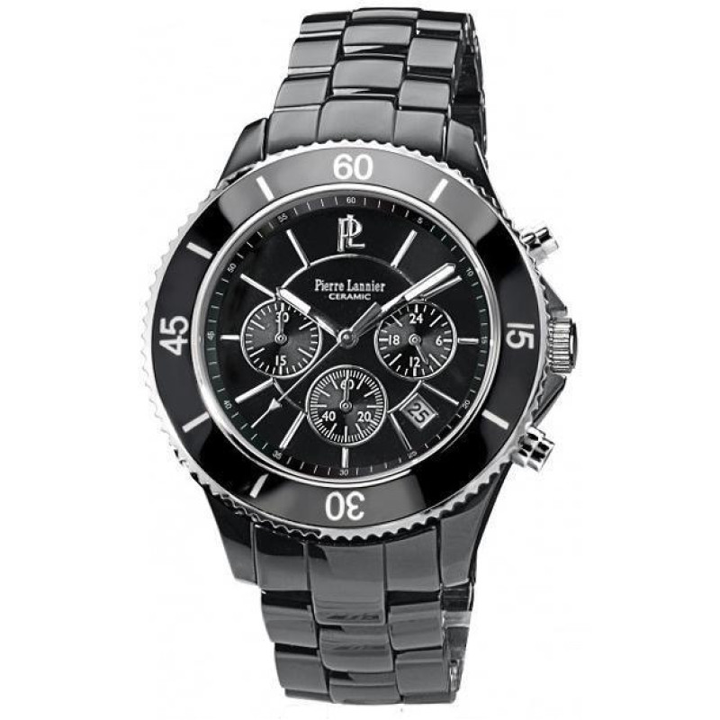 Модель имеет водонепроницаемость 30 м. Корпус выполнен из материала – керамика. Прочное минеральное стекло надежно защищает циферблат от ударов и других повреждений. Удобный керамический браслет позволяет часам комфортно сидеть на запястье. Из дополнительных функций имеются: дата, секунды, хронограф.