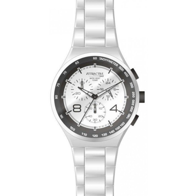 Модель имеет водонепроницаемость 100 м. Корпус выполнен из материала – пластик. Прочное минеральное стекло надежно защищает циферблат от ударов и других повреждений. Удобный пластик ремешок позволяет часам комфортно сидеть на запястье. Из дополнительных функций имеются: секунды, тахиметр, хронограф.