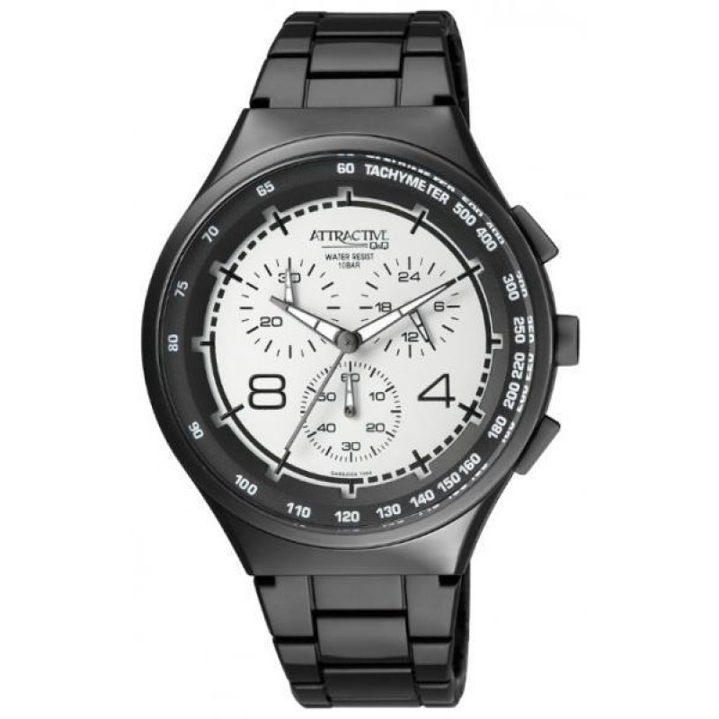 Модель имеет водонепроницаемость 100 м. Корпус выполнен из материала – пластик. Прочное минеральное стекло надежно защищает циферблат от ударов и других повреждений. Удобный пластик ремешок позволяет часам комфортно сидеть на запястье. Из дополнительных функций имеются: секунды, тахиметр, хронограф.