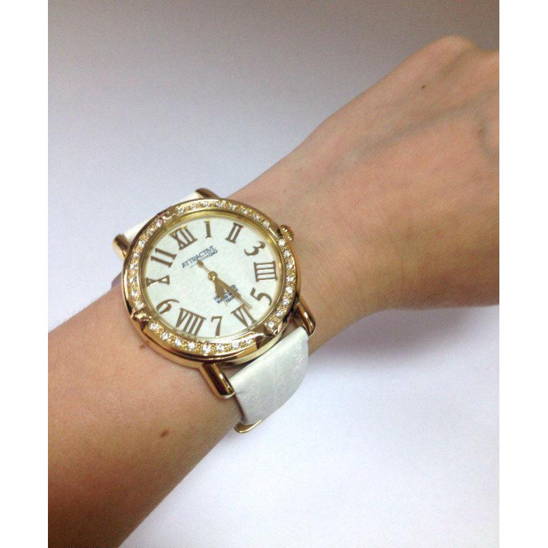 Сатиновый ремешок цвета топлёного молока. Корпус с PVD-покрытием цвета лимонного золота. Безель укра..