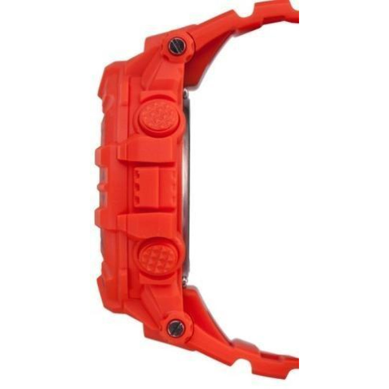 Модель имеет водонепроницаемость 100 м. Корпус выполнен из материала – пластик. Прочное пластиковое стекло надежно защищает циферблат от ударов и других повреждений. Удобный полимер ремешок позволяет часам комфортно сидеть на запястье. Из дополнительных функций имеются: 12 и 24-часовой формат времени, GMT, автоматический календарь, будильник, год, дата, день недели, ежечасный сигнал, месяц, секундомер, секунды, таймер обратного отсчёта, электролюминесцентная подсветка.