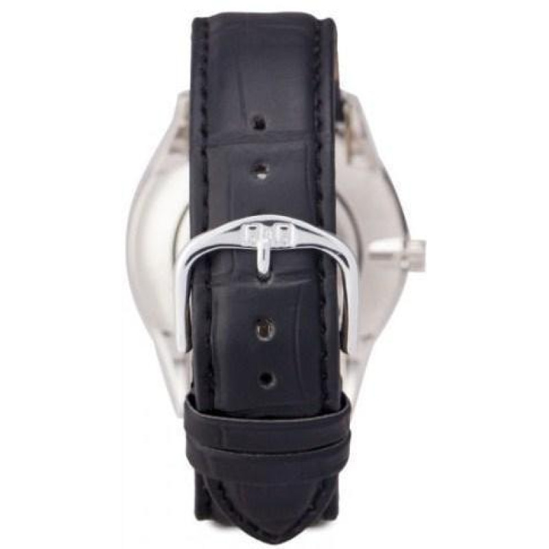 Модель имеет водонепроницаемость 30 м. Корпус выполнен из материала – латунь. Прочное минеральное стекло надежно защищает циферблат от ударов и других повреждений. Удобный кожаный ремешок позволяет часам комфортно сидеть на запястье. Из дополнительных функций имеются: секунды.