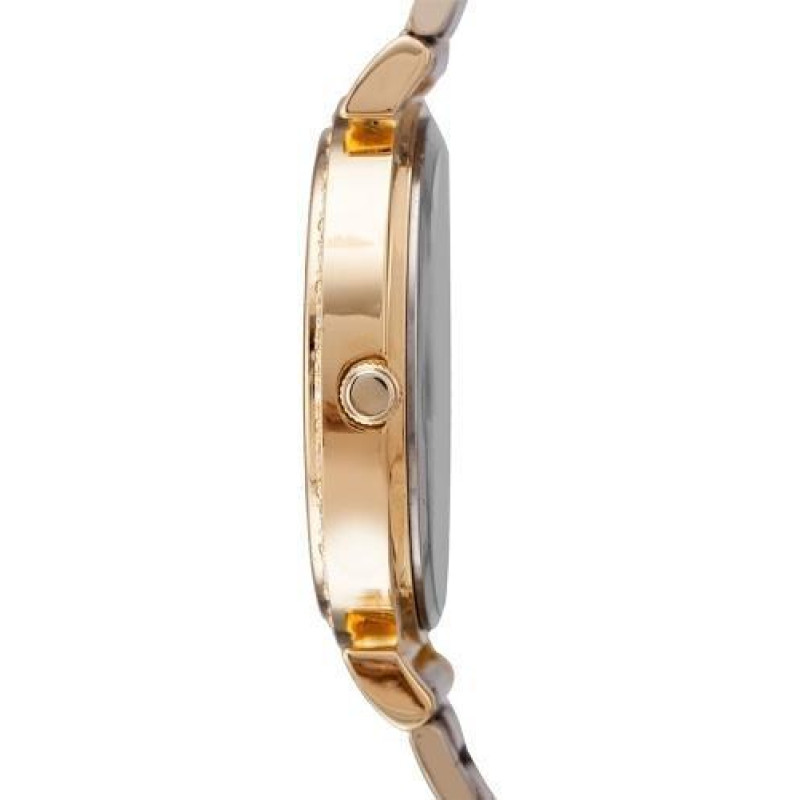 Корпус женских часиков изготовлен из латуни и дополнен блеском фианитов, браслет – из нержавеющей ст..