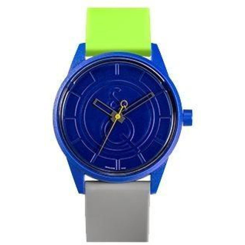 Используется японский механизм Miyota. Корпус часов выполнен из пластика синего цвета. Белый и желты..