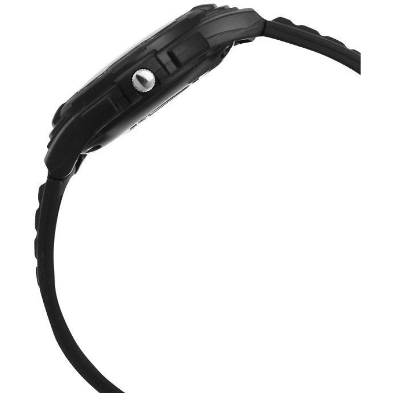 Модель имеет водонепроницаемость 100 м. Корпус выполнен из материала – пластик. Прочное пластиковое стекло надежно защищает циферблат от ударов и других повреждений. Удобный полимер ремешок позволяет часам комфортно сидеть на запястье. Из дополнительных функций имеются: секунды.
