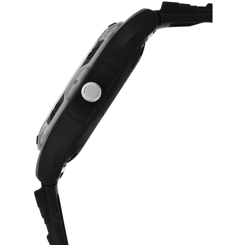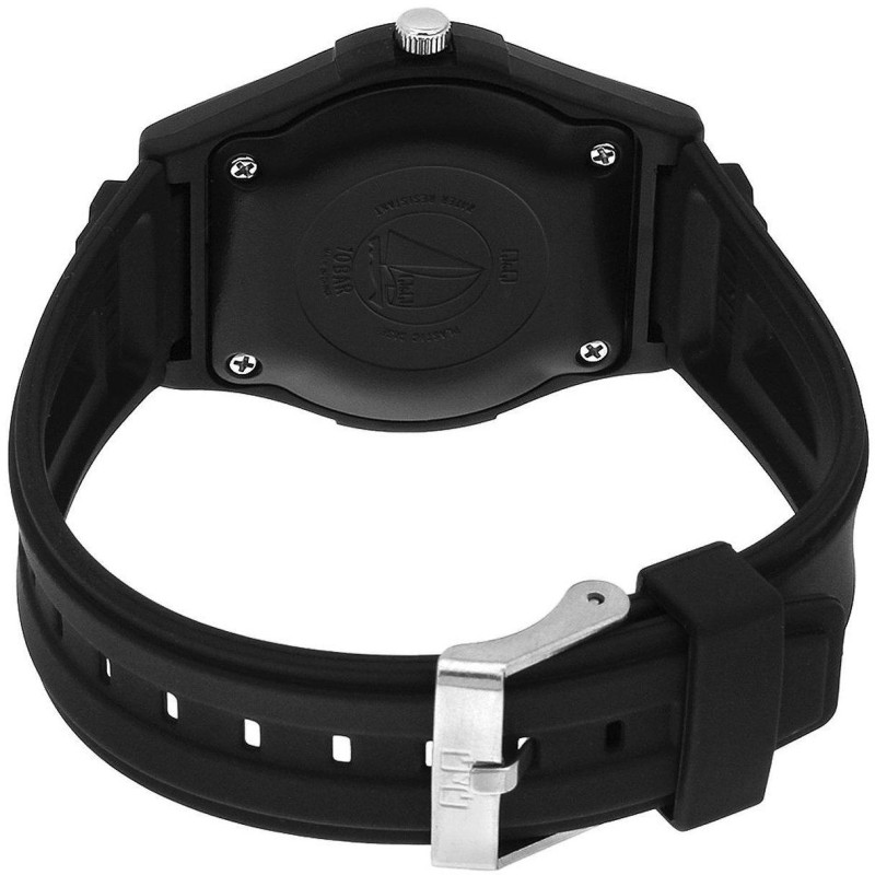 Модель имеет водонепроницаемость 100 м. Корпус выполнен из материала – пластик. Прочное пластиковое стекло надежно защищает циферблат от ударов и других повреждений. Удобный полимер ремешок позволяет часам комфортно сидеть на запястье. Из дополнительных функций имеются: секунды.