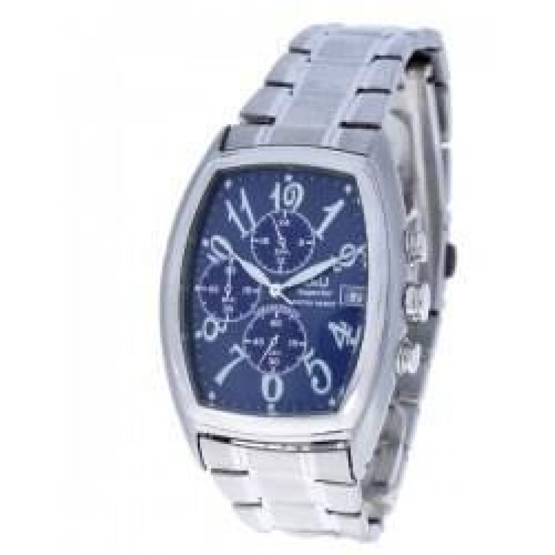 Модель имеет водонепроницаемость 30 м. Корпус выполнен из материала – сталь. Прочное минеральное стекло надежно защищает циферблат от ударов и других повреждений. Удобный стальной браслет позволяет часам комфортно сидеть на запястье. Из дополнительных функций имеются: дата, дополнительный показатель времени в 24-х часовом формате, секунды, хронограф.