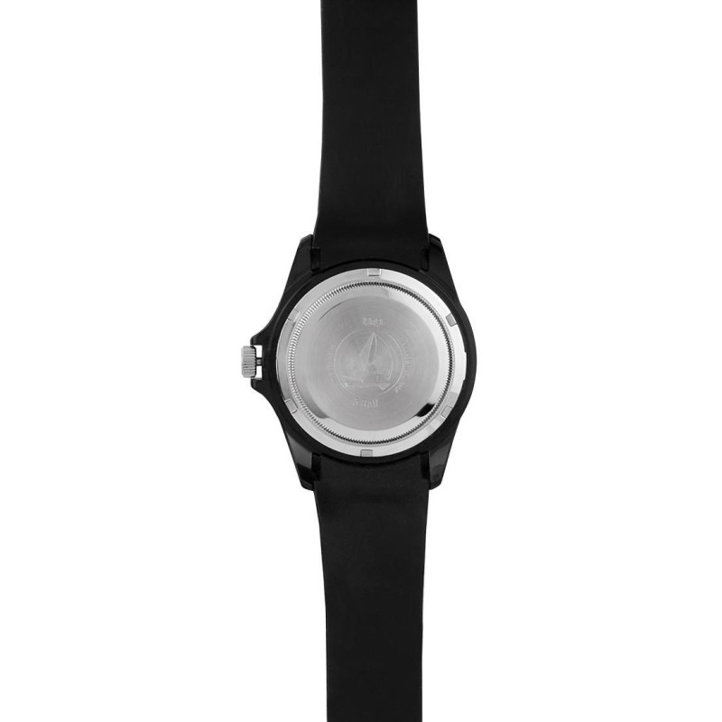 Чёрный силиконовый ремешок. Корпус чёрного цвета. Цвет циферблата — чёрный. Вид циферблата — арабски..