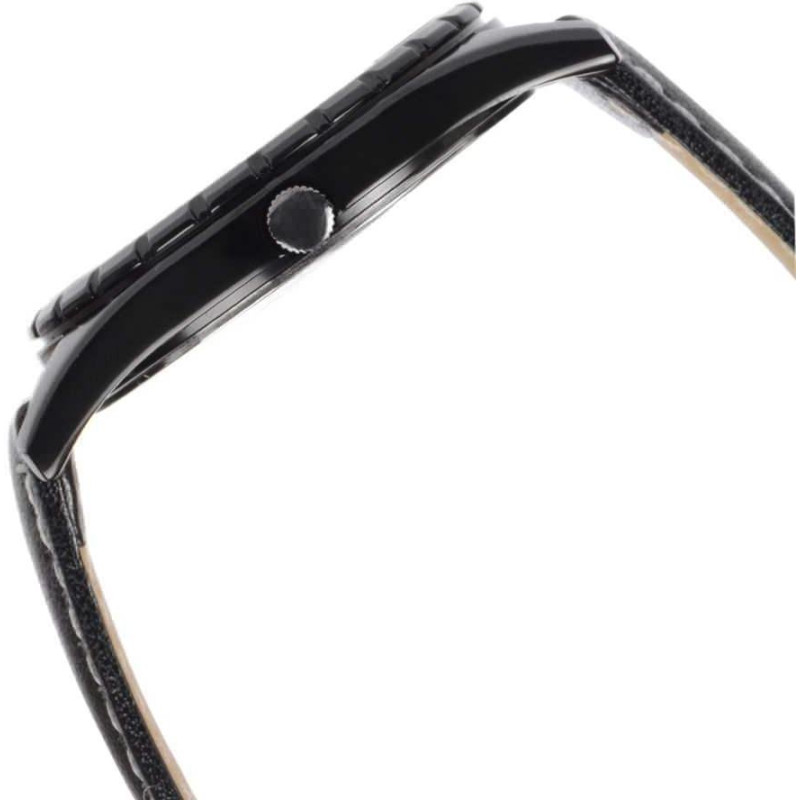 Чёрный кожаный ремешок. Корпус покрыт чёрным PVD-покрытием. Цвет циферблата — чёрный. Вид циферблата..