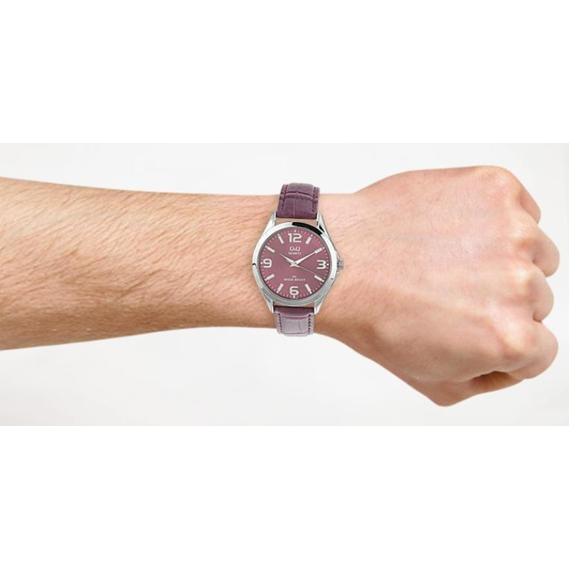 Фиолетовый кожаный ремешок. Цвет циферблата — фиолетовый. Вид циферблата — арабские цифры. Установле..