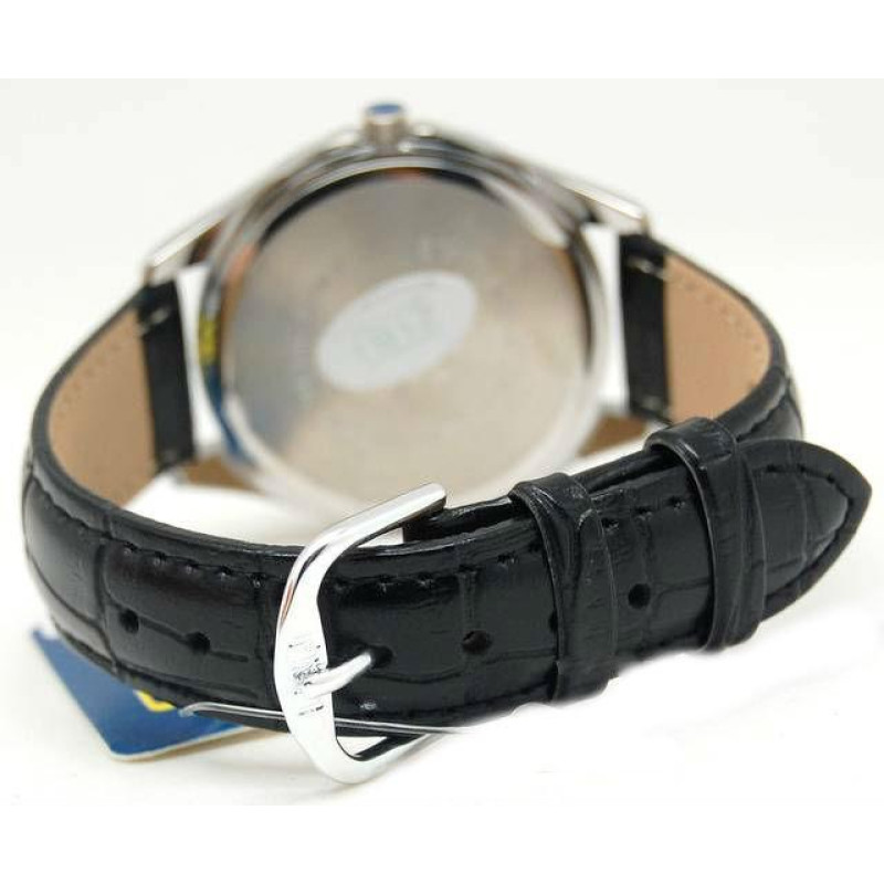 Модель имеет водонепроницаемость 30 м. Корпус выполнен из материала – латунь. Прочное минеральное стекло надежно защищает циферблат от ударов и других повреждений. Удобный кожаный ремешок позволяет часам комфортно сидеть на запястье. Из дополнительных функций имеются: секунды.