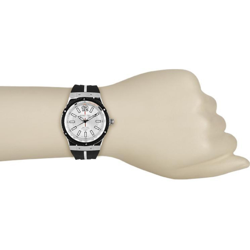Корпус частично покрыт чёрным PVD-покрытием. Цвет циферблата — серебро. Вид циферблата — арабские ци..