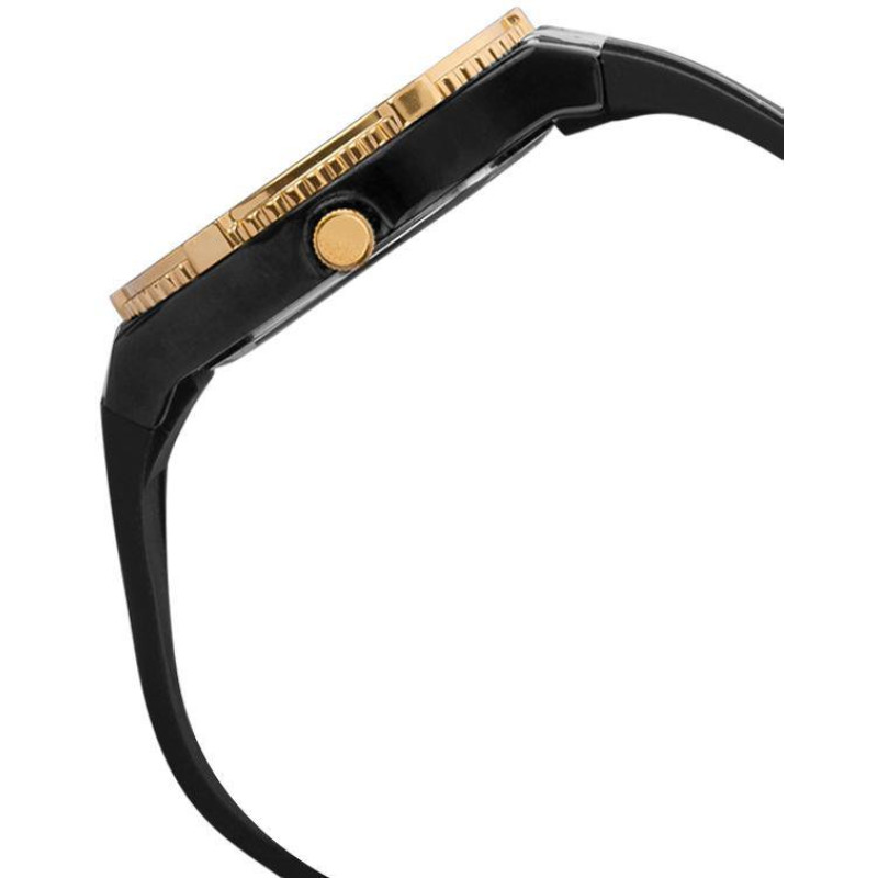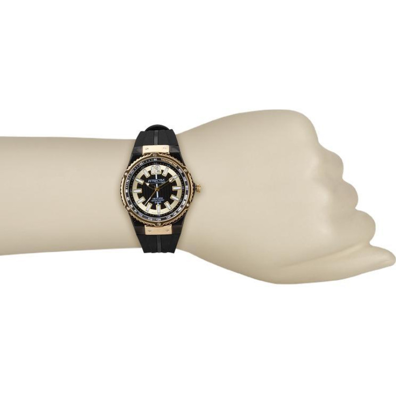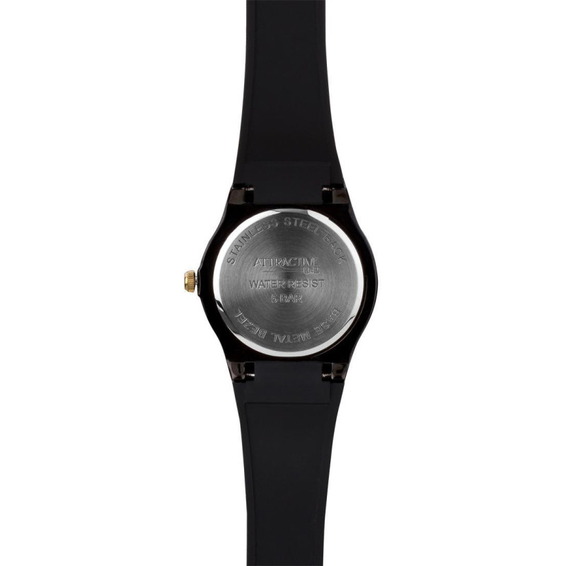 Модель имеет водонепроницаемость 50 м. Корпус выполнен из материала – латунь + PVD. Прочное минеральное стекло надежно защищает циферблат от ударов и других повреждений. Удобный полимер ремешок позволяет часам комфортно сидеть на запястье. Из дополнительных функций имеются: секунды.