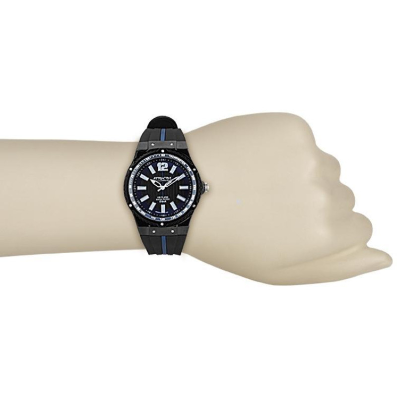 Корпус покрыт чёрным PVD-покрытием. Цвет циферблата — чёрный. Вид циферблата — арабские цифры и инде..