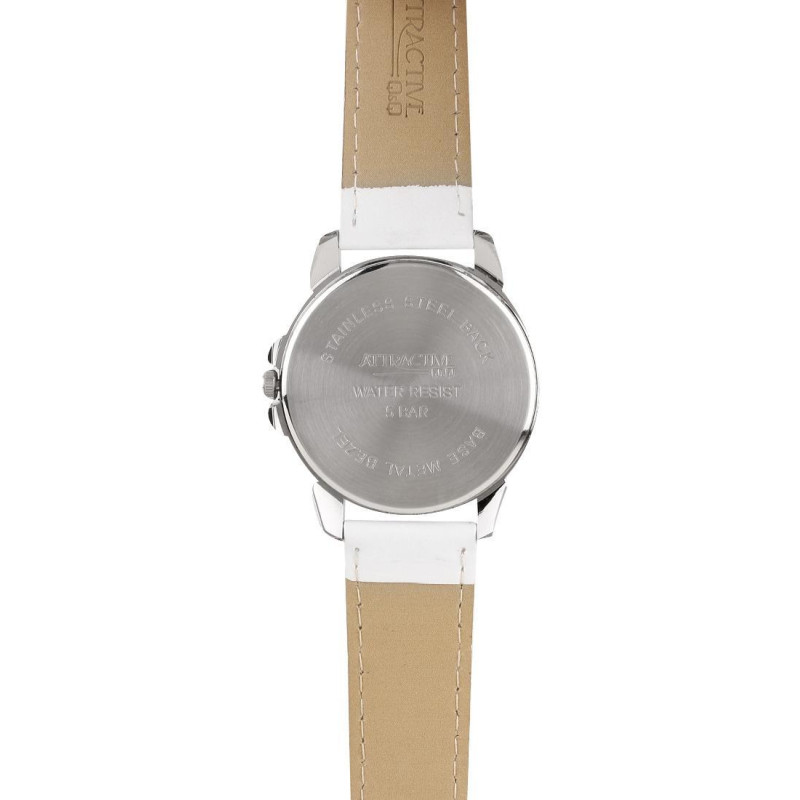 Белый кожаный ремешок. Цвет циферблата — белый. Вид циферблата — арабские цифры и индексы. Тип батар..