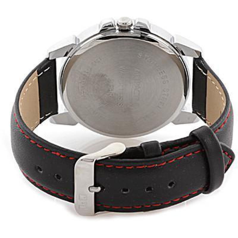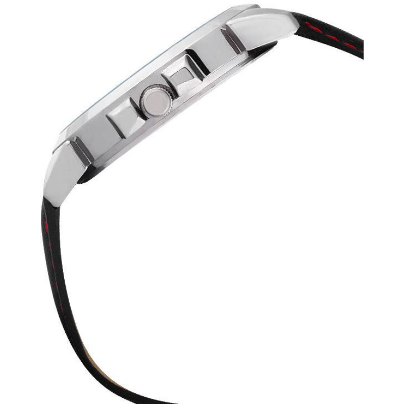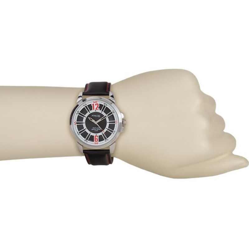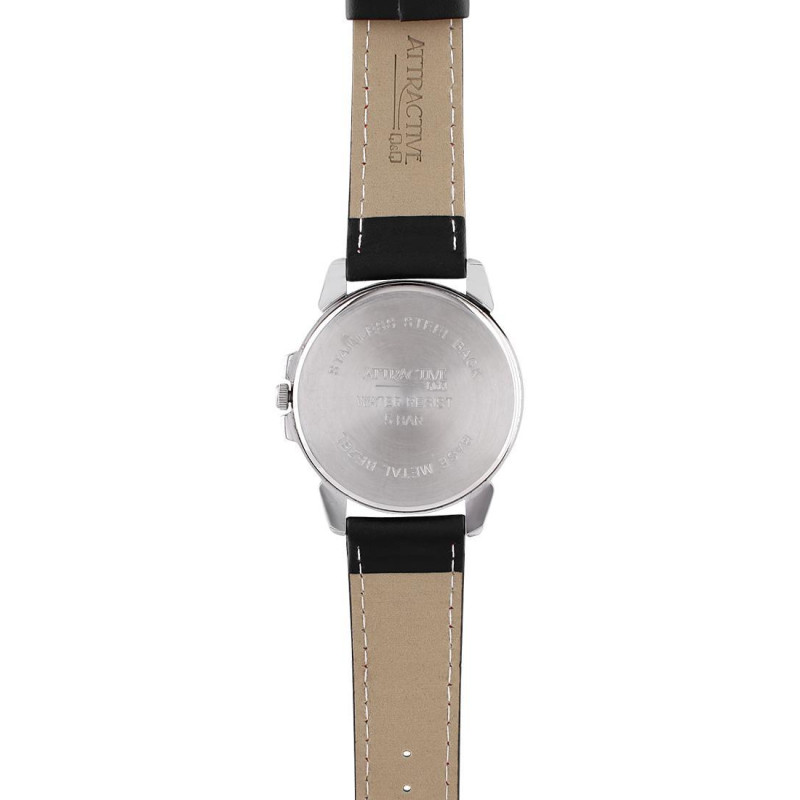 Чёрный кожаный ремешок. Цвет циферблата — чёрно-белый. Вид циферблата — арабские цифры и индексы. Ти..