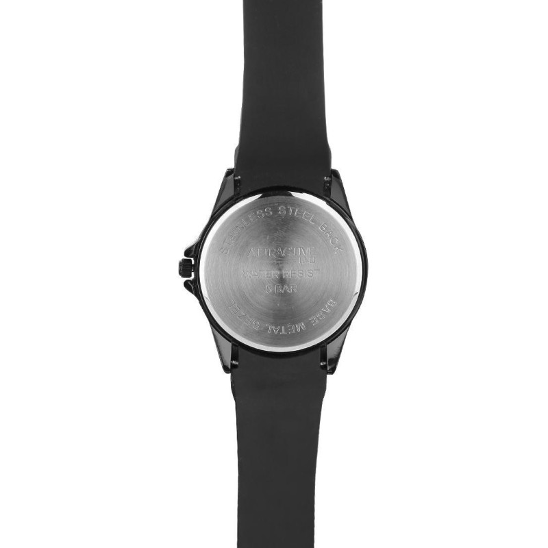 Модель имеет водонепроницаемость 50 м. Корпус выполнен из материала – латунь + PVD. Прочное минеральное стекло надежно защищает циферблат от ударов и других повреждений. Удобный силиконовый ремешок позволяет часам комфортно сидеть на запястье. Из дополнительных функций имеются: минуты, секунды, часы.