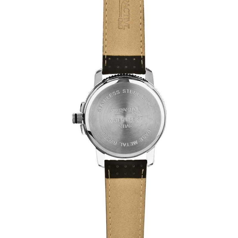 Модель имеет водонепроницаемость 50 м. Корпус выполнен из материала – латунь. Прочное минеральное стекло надежно защищает циферблат от ударов и других повреждений. Удобный кожаный ремешок позволяет часам комфортно сидеть на запястье. Из дополнительных функций имеются: дата, секунды.