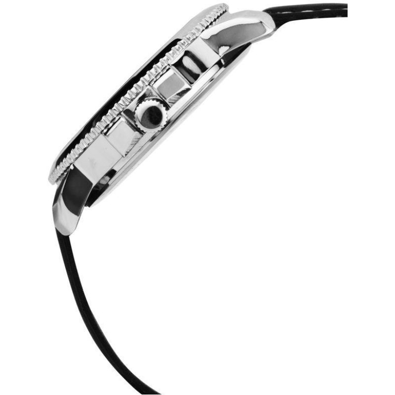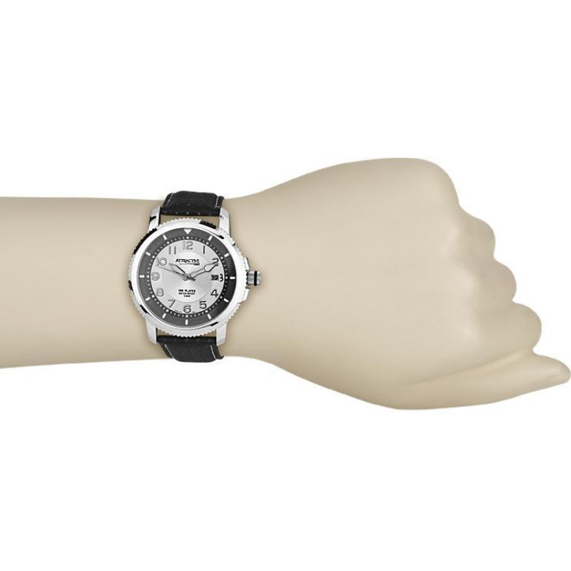 Люминесцентные стрелки. Чёрный кожаный ремешок. Цвет циферблата - чёрно-серебристый. Вид циферблата ..