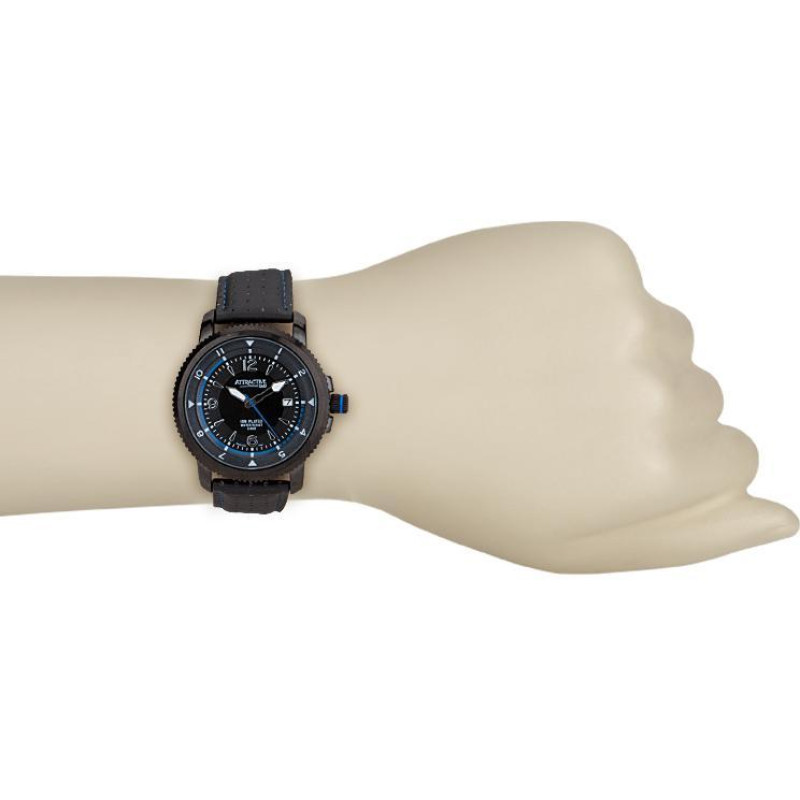 Люминесцентные стрелки. Корпус покрыт чёрным PVD-покрытием.Чёрный кожаный ремешок. Вид циферблата — ..