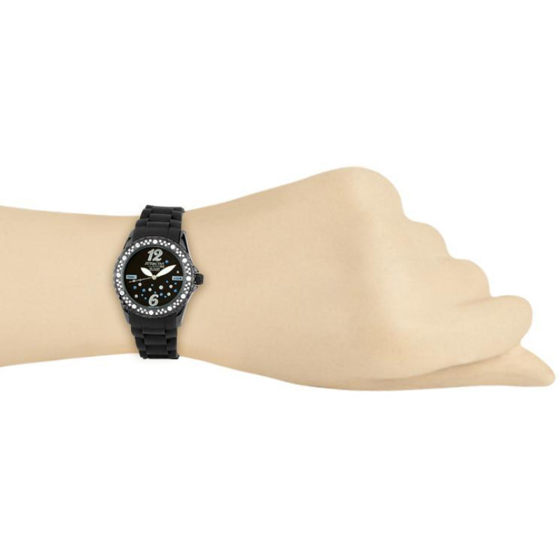 Люминесцентные стрелки. Чёрный силиконовый ремешок. Корпус покрыт чёрным PVD-покрытием и украшен фиа..