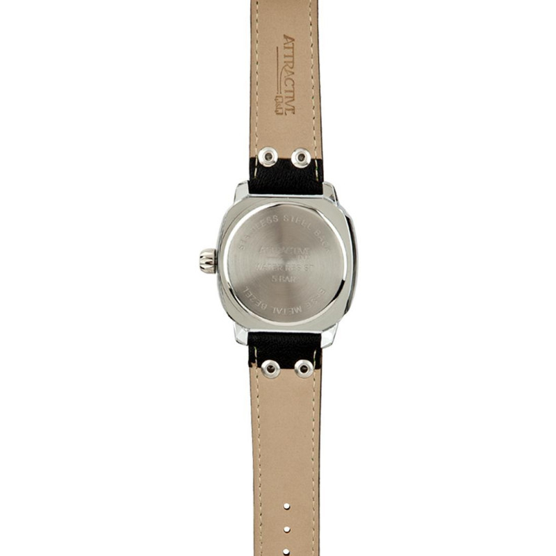 Модель имеет водонепроницаемость 50 м. Корпус выполнен из материала – латунь. Прочное минеральное стекло надежно защищает циферблат от ударов и других повреждений. Удобный кожаный ремешок позволяет часам комфортно сидеть на запястье. Из дополнительных функций имеются: секунды.