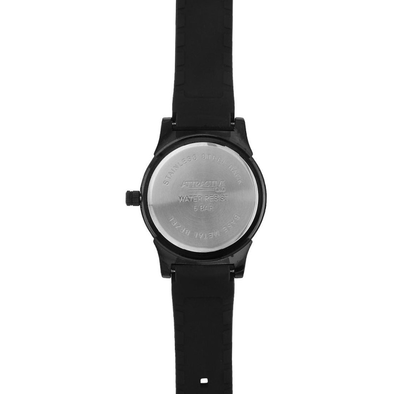 Чёрный силиконовый ремешок. Корпус покрыт чёрным PVD-покрытием. Циферблат — чёрного цвета. Вид цифер..