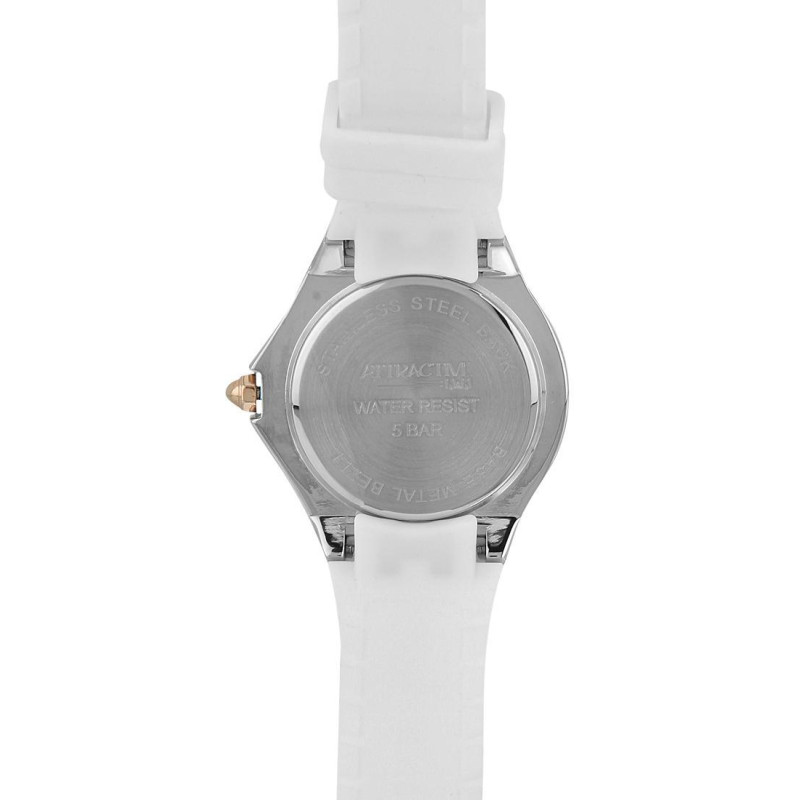 Люминесцентные стрелки. Корпус частично покрыт PVD-покрытием цвета розового золота, украшен фианитам..